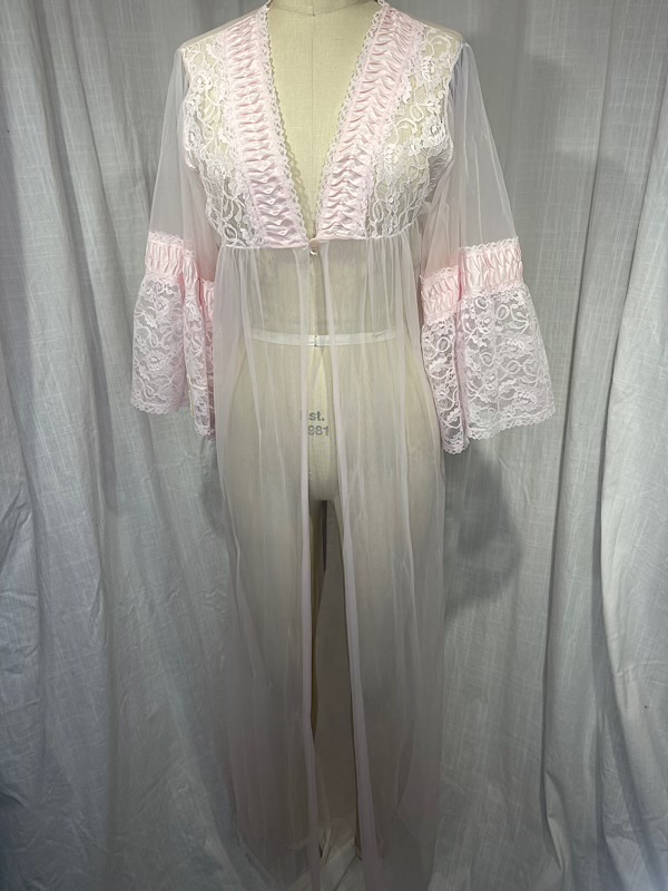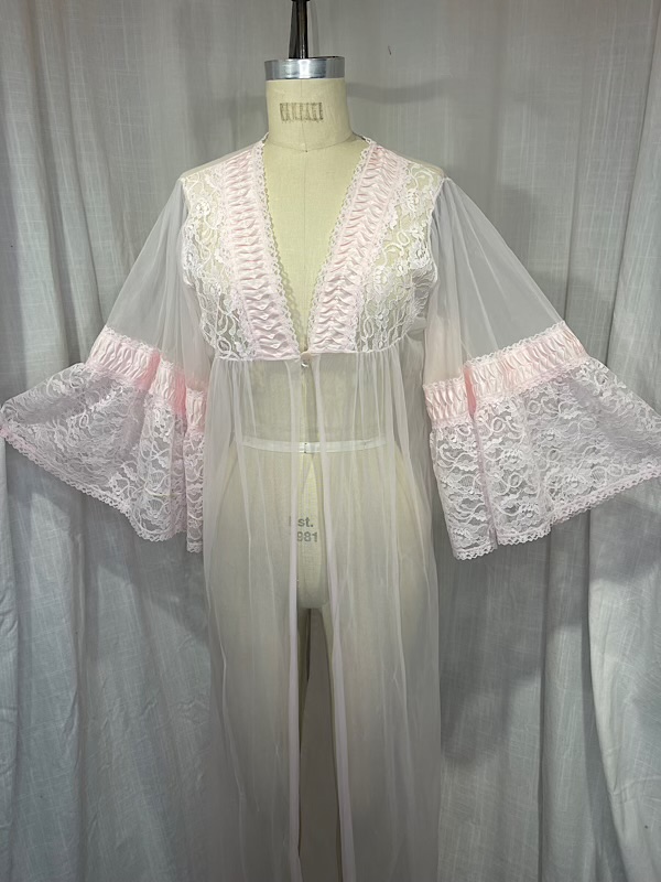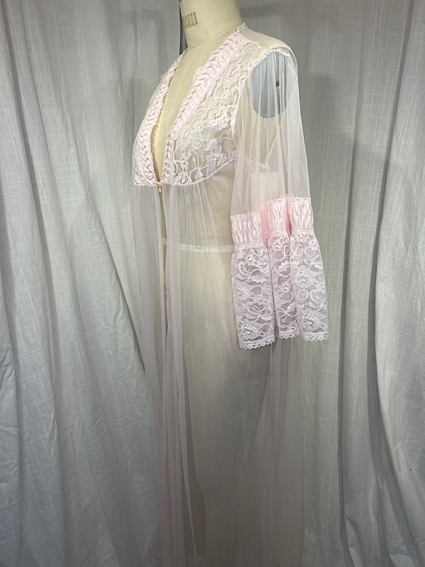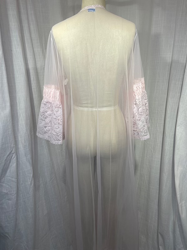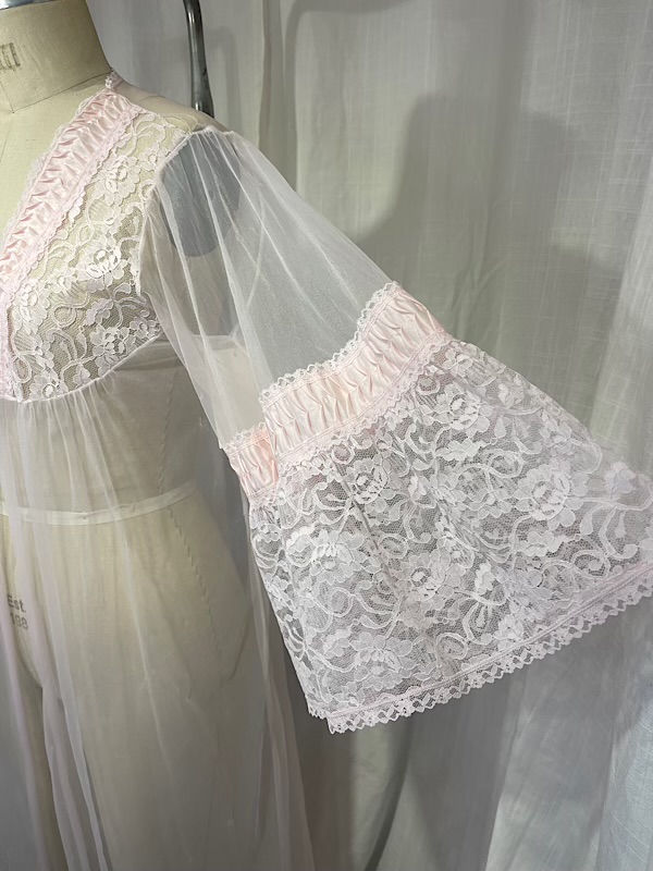 Vintage 60s Baby Pink Sheer Lace Robe