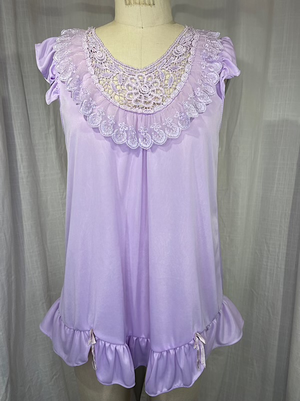 Excellent condition. Beautiful purple short babydoll nightgown with lace yoke.