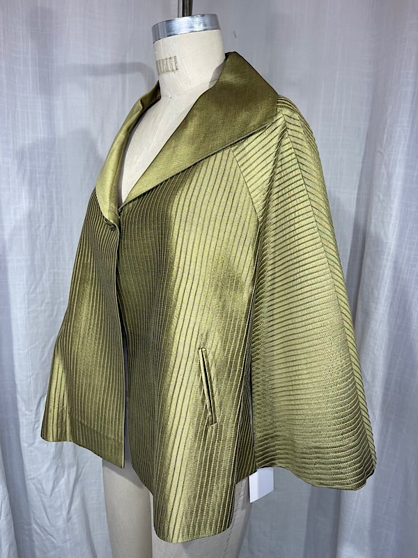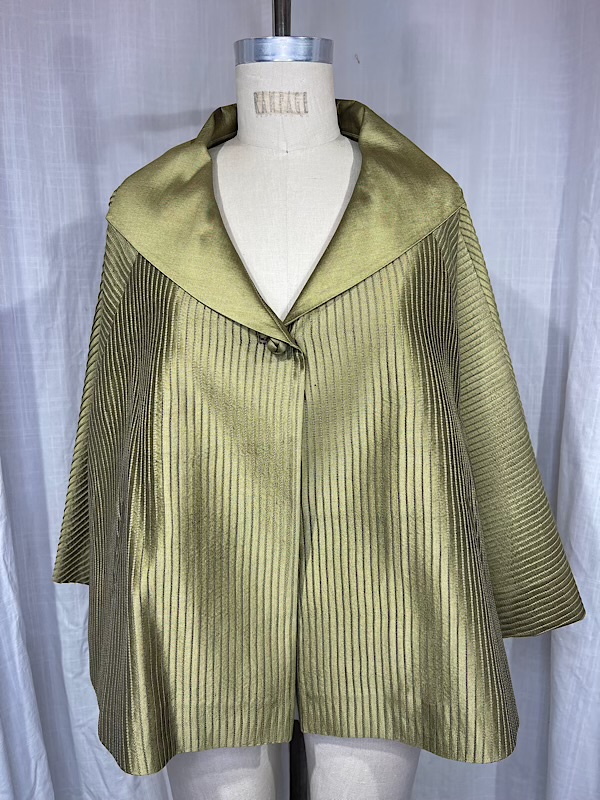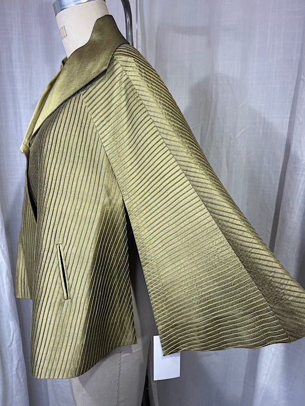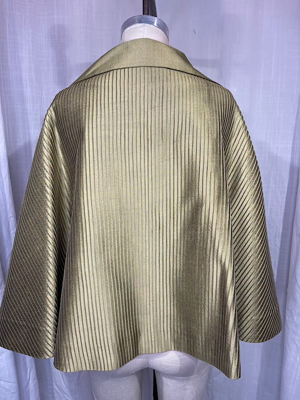 Excellent condition. Beautiful gold pleated capelet with welt openings for a belt or sash. Fully lined.