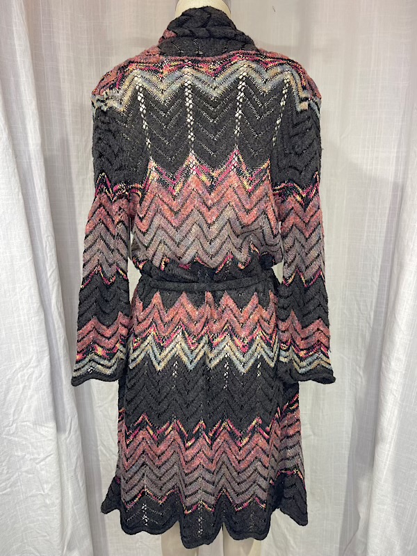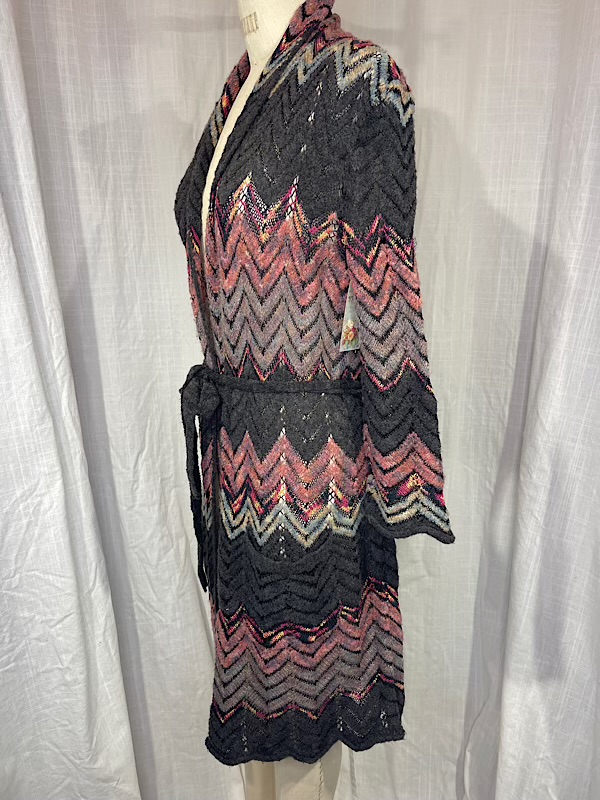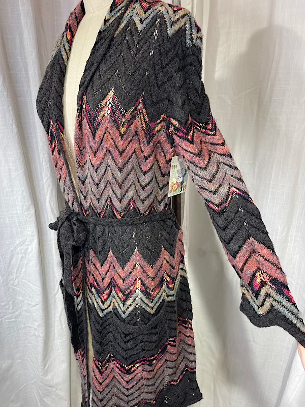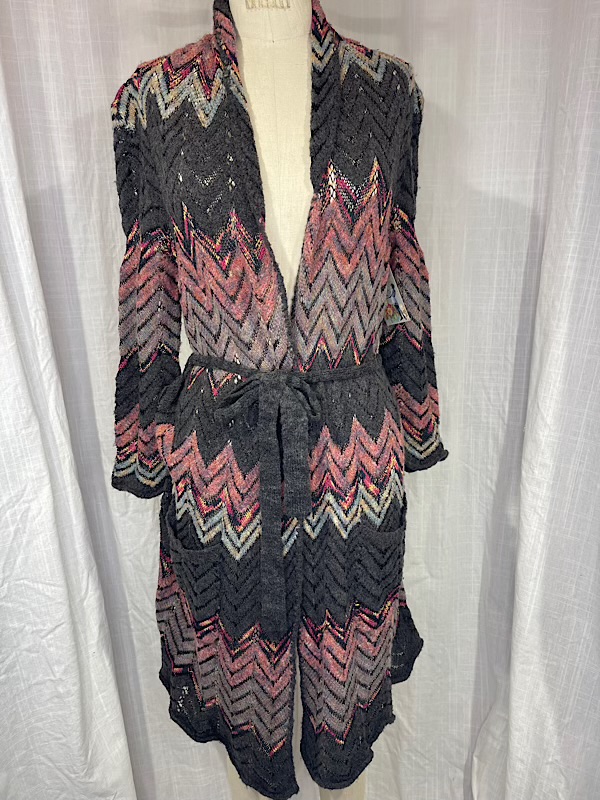 Excellent condition. Beautiful pink and charcoal grey chevron knit long shrug.Two pockets. Ties at waist.