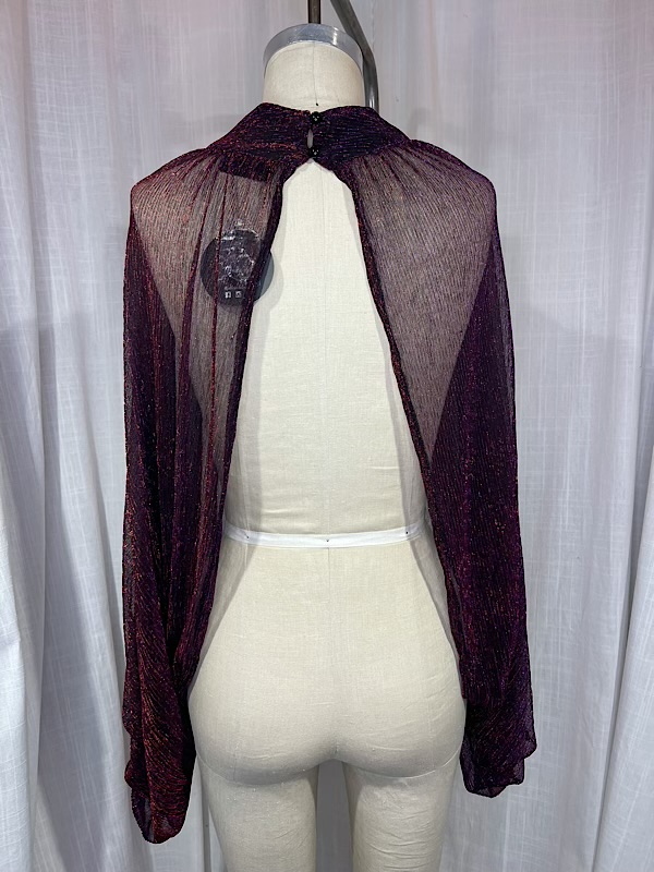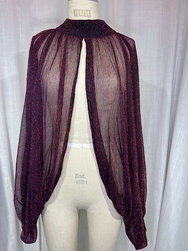 Vintage Inspired 70s Iridescent Burgundy Sheer Blouse