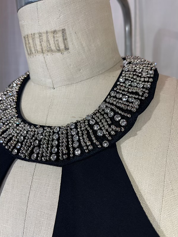 Vintage Y2k Black Knit Evening Dress with Rhinestone Collar